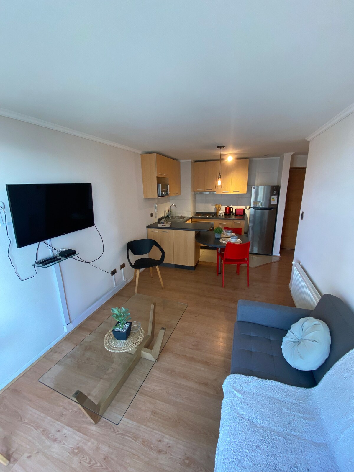 Disfruta de este hermoso y cómodo Departamento Céntrico en Concepción. Cuenta con cama matrimonial Cic Premium, 1 baño, TV, netflix e internet. Cocina equipada con horno, encimera de 2 platos, campana, loza y cubiertos varios, hervidor, tostadora de pan, microondas, etc. Cuenta con acceso con conserje las 24 horas. No Petfriendly.