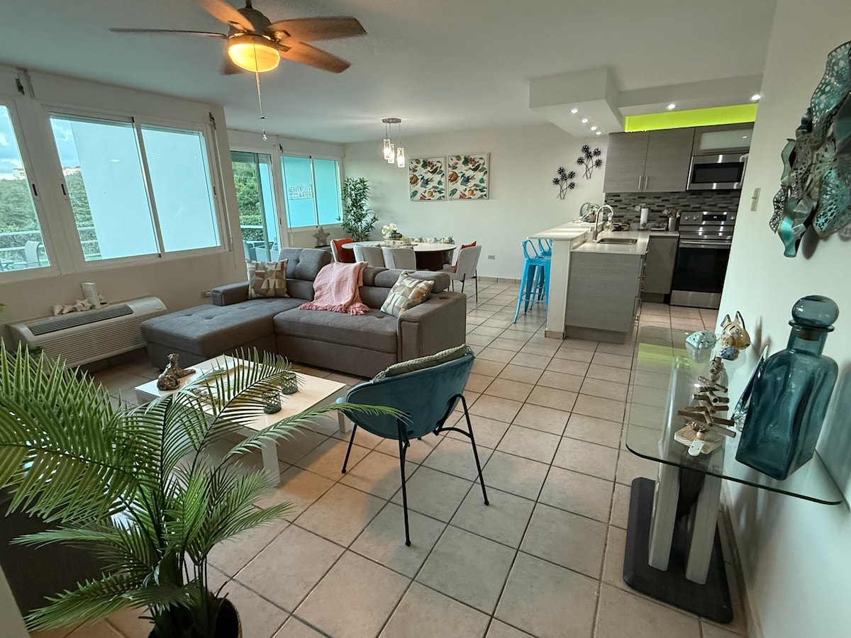 This unique apartment has a style all its own. Cozy and romantic environment for a couples retreat, family suitable , infants welcomed. Spectacular Ocean and Golf course view and access. Caribbean weather all year around. A 15 minute drive to EL YUNQUE rainforest. Main supermarkets, outlet malls, and great restaurants minutes away. Tourists getaways, like horseback riding, four tracks, bioluminescent kayaking, catamaran rides and small islands tours, all near for booking.