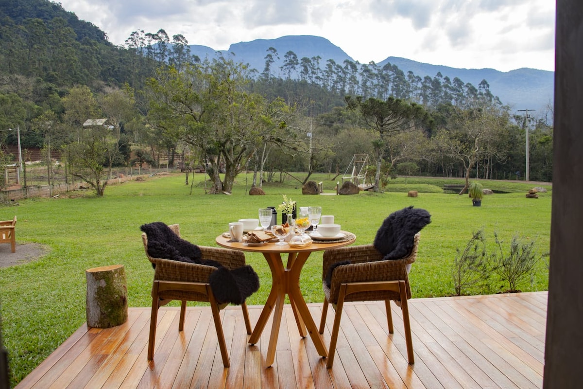 Chalé com vista incrível e aconchego