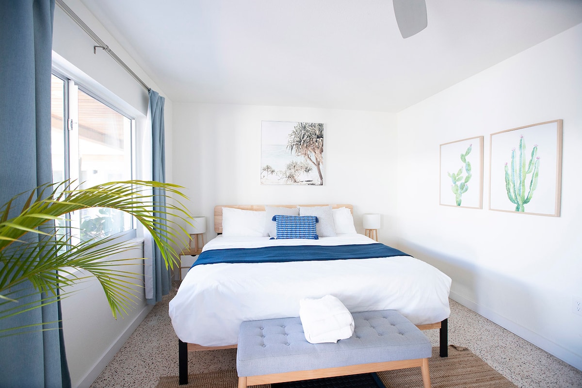It may be small, but there's more than enough room for you to relax in this studio. Sleeps 2. *Side by side units have adjoining door. • King-Sized Bed • Flat screen smart TV • Mini Refrigerator • Microwave • Coffee Maker • WiFi • Beach Supplies (Wagon, Chairs, Umbrella) • Outdoor Shower