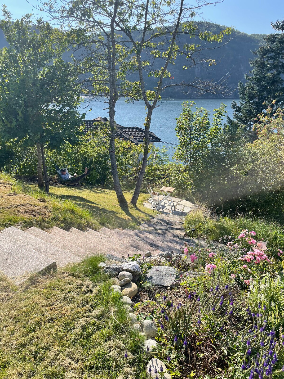 Tett på sjø, skog, by. Havutsikt. Barnevennlig