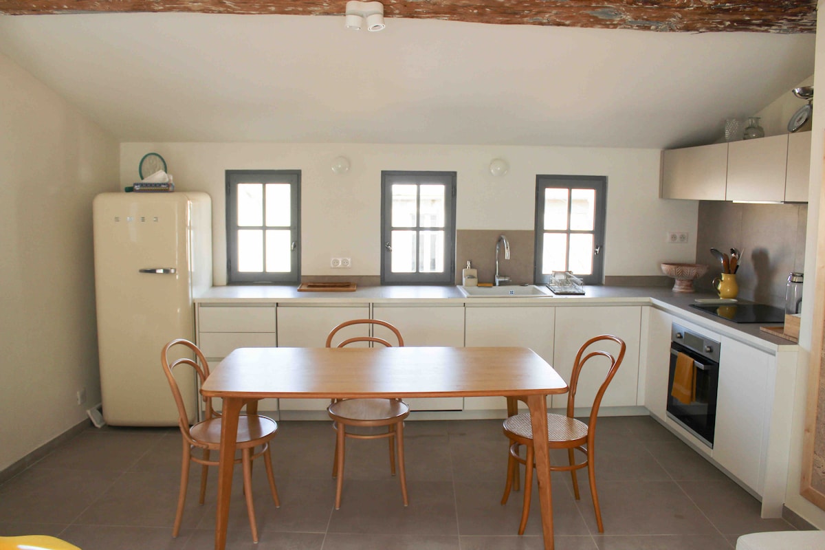 Appartement climatisé de 120m2 au cœur de la ville de Nîmes à 5 min à pied de la gare SNCF. Proximité de toutes commodités : restaurants, commerces et transports. Vous aurez le plaisir d’admirer les arènes depuis le toit terrasse de l’appartement.