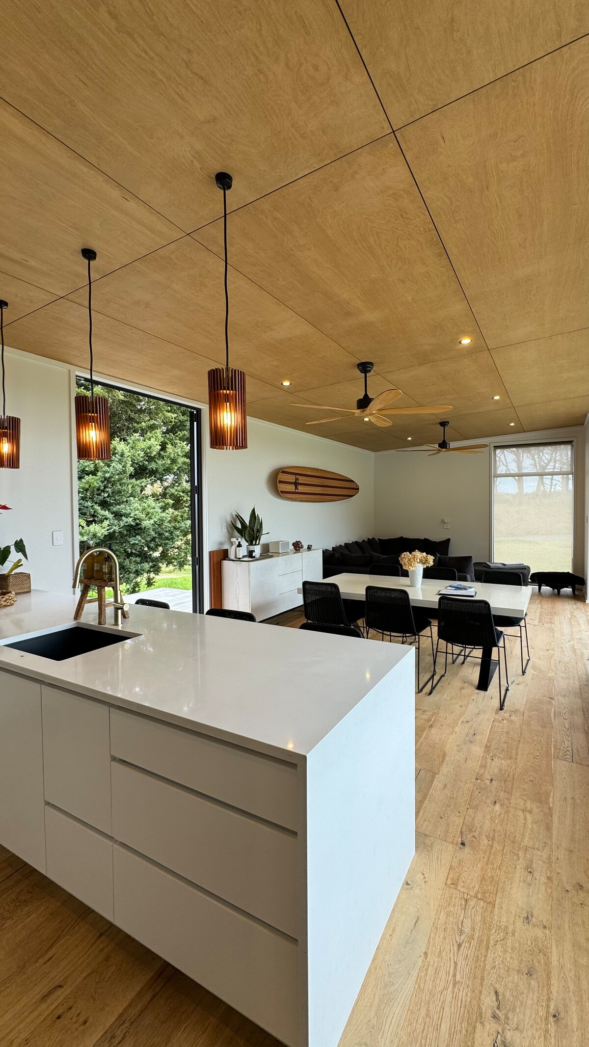 Makai Lodge tiene espectaculares vistas panorámicas de Bream Bay y se encuentra en un pequeño bloque de estilo de vida que ofrece un lugar de vacaciones idílico convenientemente ubicado a 5 minutos de Waipu y a 1,5 horas de Auckland. Disfruta de la ubicación vacacional kiwi por excelencia, pero saborea las comodidades modernas que se proporcionan, como lavavajillas, bombas de calor, lavadora y televisión inteligente. Todo lo que quieras hacer en vacaciones está a la vuelta de la esquina. Makai Lodge es un moderno apartamento de 2 dormitorios con vistas de 180 grados.