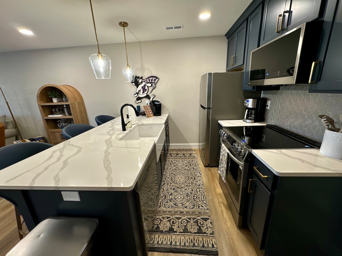 Disfruta de unas vistas inmejorables del estadio familiar Bill Snyder desde este renovado condominio de 4 camas y 2 baños en el corazón de Manhattan. Capacidad para 8 personas e incluye 4 pases de estacionamiento para el día del partido. Ubicado en College & Kimball, está a poca distancia del estadio y a pocos minutos del campus de K-State, NBAF y Tuttle Creek Blvd. ¡Este es tu asiento de primera fila para todo lo relacionado con K-State!