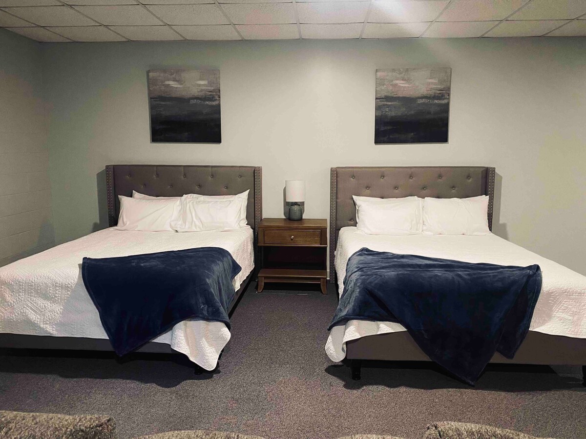 The Woods Bed and Breakfast ofrece suites de invitados extremadamente espaciosas de 900 pies cuadrados. Con mucho espacio para deambular, tus amigos y tu familia se sentirán más como en casa que en un hotel tradicional o en una pequeña cabaña. Las habitaciones cuentan con dos camas tamaño queen, baño con bañera y ducha, mininevera, microondas, cafetera en la habitación, espacio de trabajo dedicado con lámpara de escritorio LED, comedor, comedor con capacidad para 4 personas. Sala de estar con TV inteligente de 50 pulgadas y sofá Chaise. Desayuno continental incluido. *Esta habitación se encuentra junto a la sala de juegos*