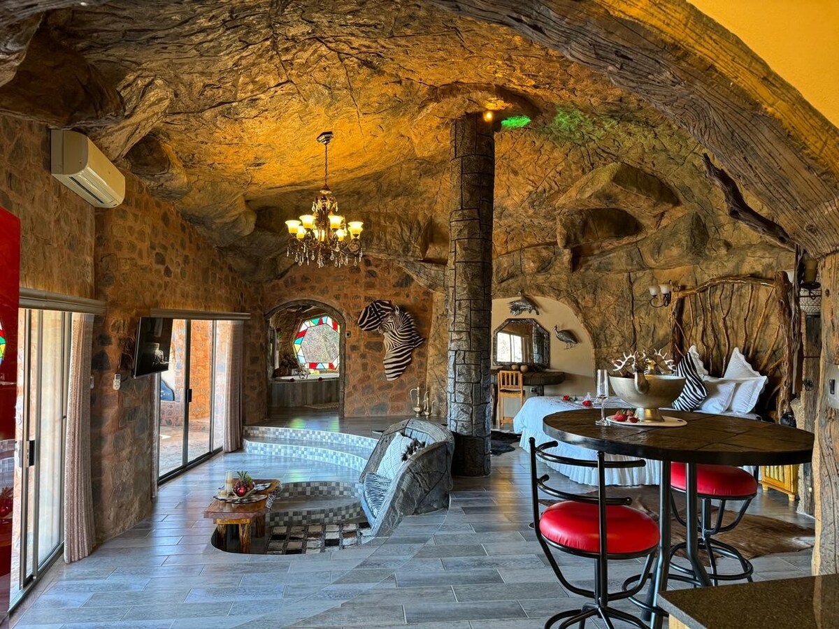 Escondido en la ladera de una montaña con vistas a un bosque de álamos y una montaña a lo lejos se encuentra la cueva de Aloe Rock. Muy aislado y tranquilo con impresionantes atardeceres africanos. Situado a solo 8 km de la autopista N4 en la granja Eljance Game Breeders y a solo dos horas del aeropuerto OR Tambo. Este alojamiento es realmente único y está equipado con todos los lujos para que tu estancia sea inolvidable. Una visita obligada para cualquier amante de la naturaleza.