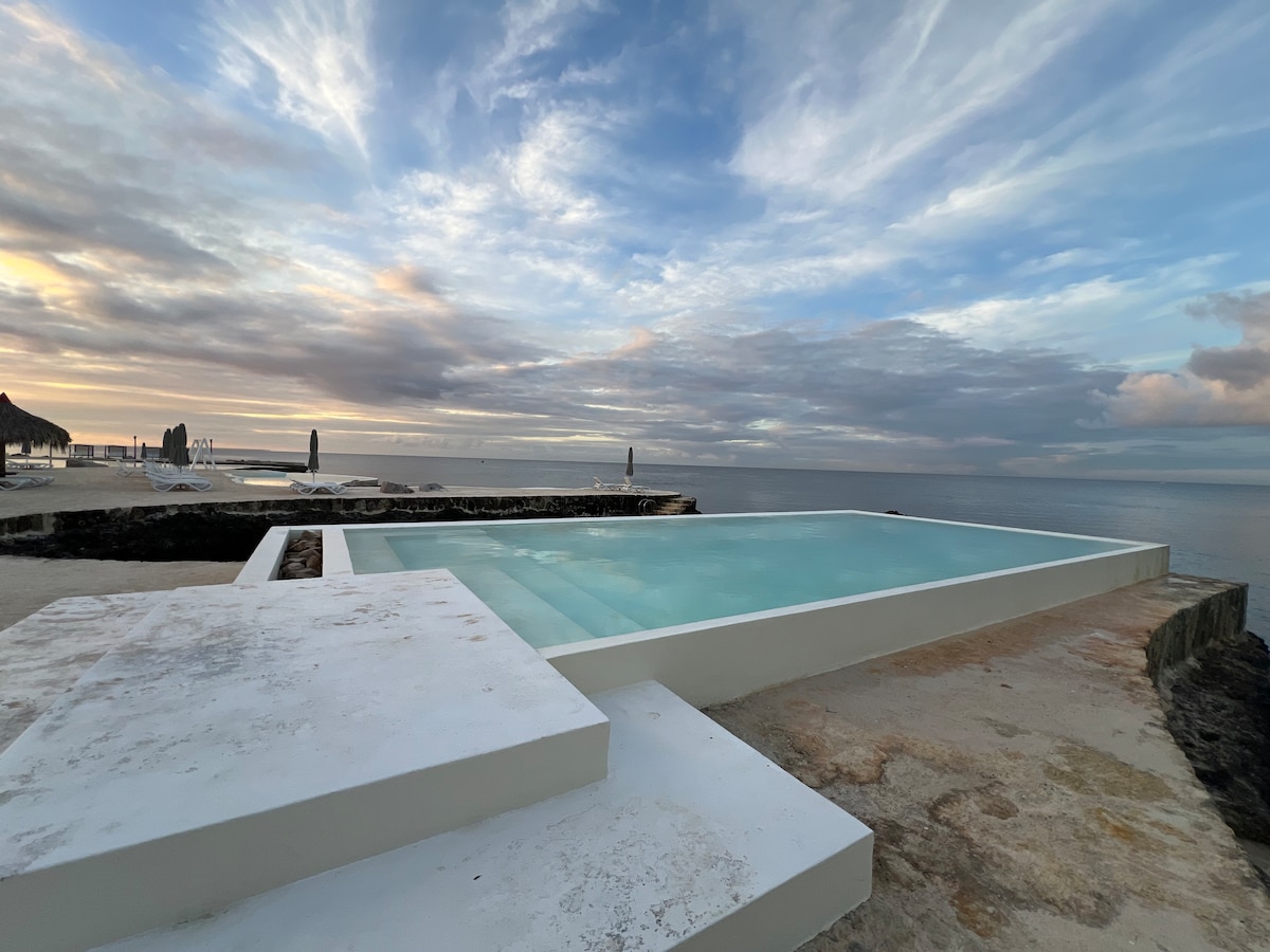 Bienvenido a nuestro nuevo apartamento frente a la playa, el destino perfecto para una escapada tranquila. Ubicado justo en la playa de arena blanca, nuestro apartamento ofrece impresionantes vistas al mar y acceso directo a la playa, lo que facilita disfrutar de las puestas de sol más increíbles del Caribe. El interior es fresco, moderno y cuidadosamente diseñado, con amplias salas de estar, un cómodo dormitorio y una cocina totalmente equipada. Relájate en tu balcón privado, junto a la piscina o haz esnórquel a lo largo de tu playa privada.