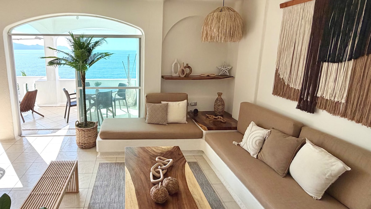 Loft con espectacular vista a la Bahía Puerto las Hadas, hermoso lugar para disfrutar en pareja ó en familia, espacios que se conectan con la naturaleza y el océano, la alberca con vista al mar es perfecta para relajarte, cuenta con chapoteadero para los pequeños de la familia, el acceso a la playa del condominio se encuentra justo abajo del área de la alberca, por lo que podrás llegar caminando, el Loft cuenta con Lavasecadora, Wi-fi, TV por cable, A/C y cocineta, perfecto para estancias largas