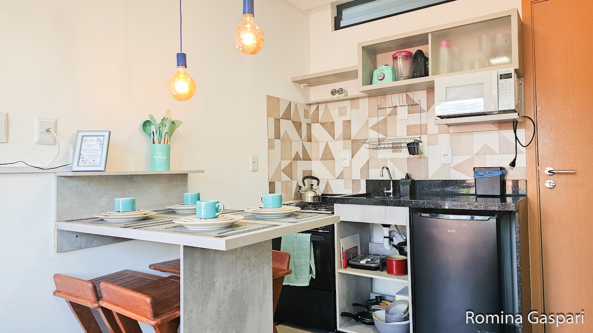Flat aconchegante, com cozinha americana, sala com sofá-cama, ar, smartTV, varanda e um quarto com cama de casal, ar e armário Cozinha com todos utensílios, micro-ondas, liquidificador, sanduicheira, frigoba, cafeteira louças e airfryer Enxoval Chuveiro com aquecimento a gás Wi-Fi Área de lazer no Rooftop com espelho d'agua, vista para o mar, piscina adulto e infantil no lado do por do sol O Maraca Beach II fica a 50 metros da praia, com elevador, portaria 24hs e acesso também pela Beira Mar