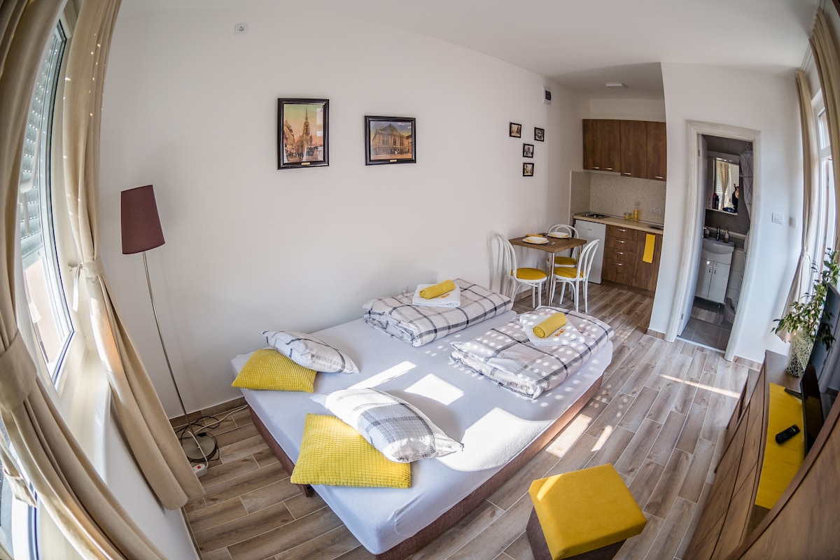 Charming, new apartment located in the heart of Old City district, in a quiet street. Ten minutes walk to Petrovaradin Fortress and several beautiful wild Danube beaches, 20 minutes to city beach Štrand.Two minutes distance from pedestrian zone and open market, 50 meters walk to Danube and to the Cathedral. Close to many restaurants, cafes, pubs, grocery stores, bakery... Perfect for solo travelers, couples, business travellers, group of friends. Surrounded by charming and lively neighborhood.