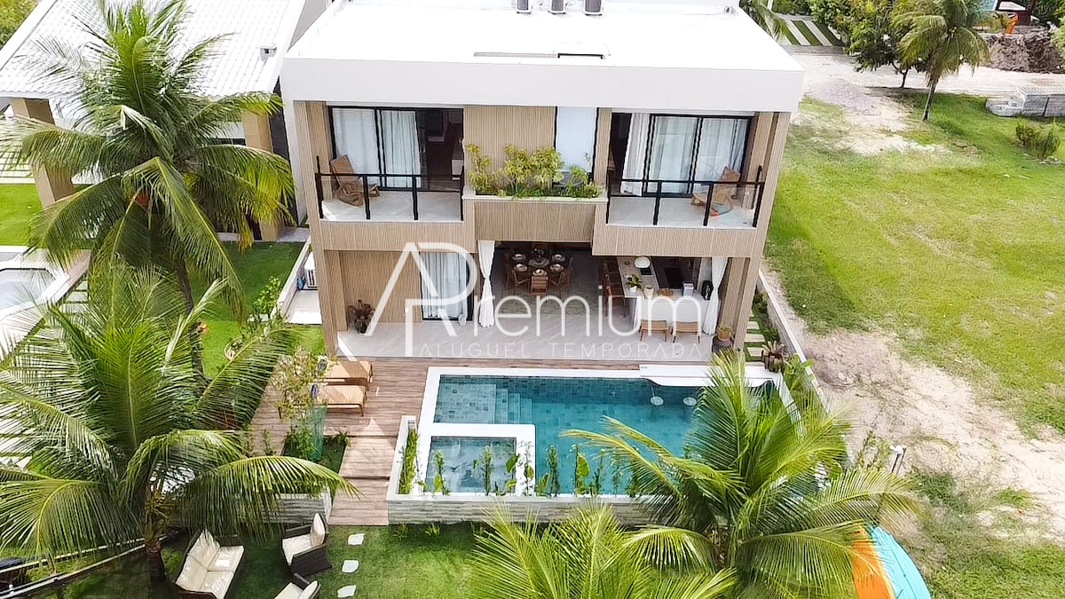 Este elegante alojamiento en una playa paradisíaca es perfecto para viajes con amigos y familiares. En un condominio cerrado con acceso exclusivo a la playa, la casa cuenta con 3 suites con aire acondicionado y capacidad para 12 adultos. Cocina equipada y juego completo de cama, mesa y baño - estándar hotelero. El área exterior cuenta con piscina y barbacoa privada, bebedero y freezer. Área de servicio completa. El área común del condominio cuenta con piscina con rayas, mini campo de fútbol y parque infantil.