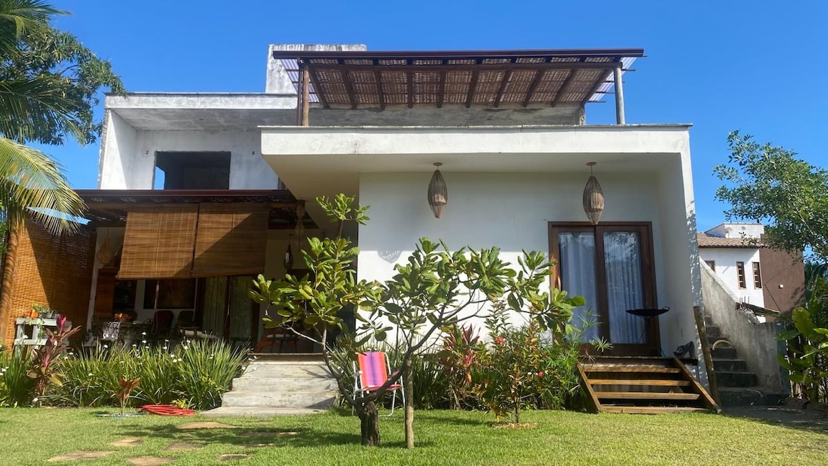 É um espaço calmo e cheio de estilo à 200 metros da praia, em meio a vegetação nativa! Somos LGBTQIAP+ friendly e por estarmos afastados do núcleo da comunidade desfrutamos de silêncio e tranquilidade mas a cinco minutos do agito! A suíte com vista para as árvores é garantia de descanso. A cozinha com teto de piaçava é linda e está preparada com o necessário. A sala de banho conta com espaços reservados que garante a sua intimidade. Relaxe neste espaço! Você vai adorar!