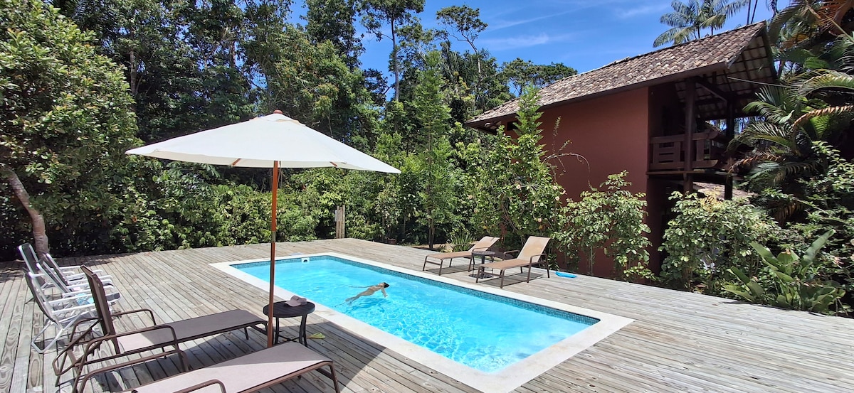 Vive Itacaré en Casa Clareia Surf Camp! Eco House de alto nivel (3 suites) para hasta 7 adultos, a 300 m de la Playa da Concha y cerca del centro. Suites king size con aire acondicionado y Wi-Fi, piscina privada con carril de nado, cocina completa, barbacoa y horno de leña. Servicio de limpieza (excepto domingos) y cocinera opcional. Disfruta puestas de sol, surf, yoga, aves, vida silvestre y experiencias auténticas de aprendizaje y hospitalidad. ¡Confort y naturaleza en perfecta armonía!