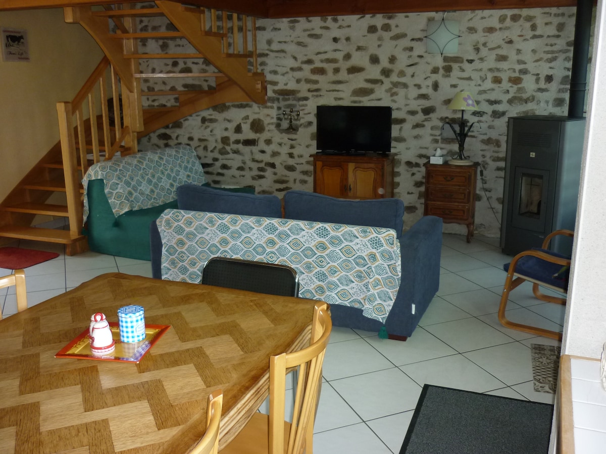 Para reunirse con la familia o los amigos. una casa que consta de una gran sala de estar ( TV, reproductor de DVD, juegos de mesa, billar) y zona de comedor con una cocina equipada ... Un baño: inodoro, ducha, lavabo y lavadora. Arriba hay un dormitorio altillo que ofrece un lugar de juego para los niños, una habitación cerrada . Afuera un jardín y un refugio acogedor (barbacoa). ¡Ideal para descansar e ir a pasear! ¡Tranquilo, verde y simplicidad en la cita!