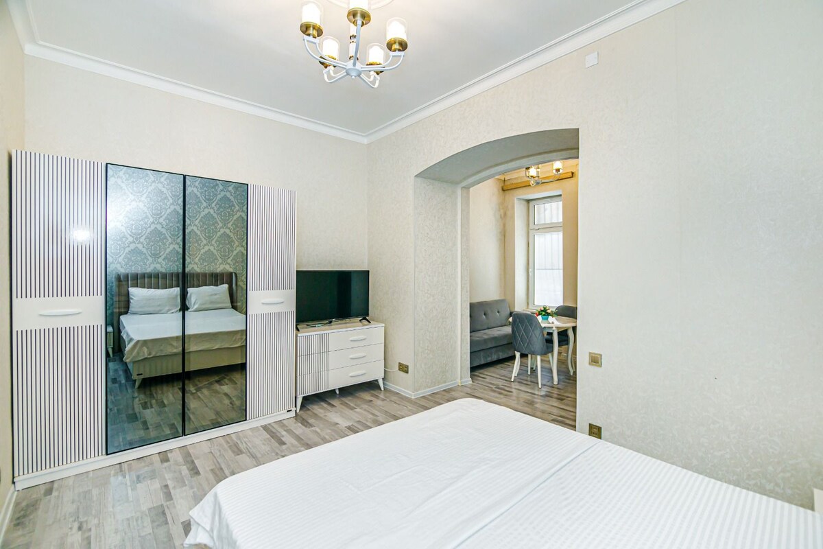 Enjoy a stylish experience at this centrally-located place.apartment has 1 bedroom 1 living room full equipment kitchen and bathroom. There are 2 split air cond. there is heather system.free wifi Tv smart box.there is no an elevator but easy to come up because apartment in the second floor. I mean ground ,first and second. The location is perfect. It is in fountain square Nizami. Walkable distance from Old City and Seaside 3-4minute . Every activities are very close.