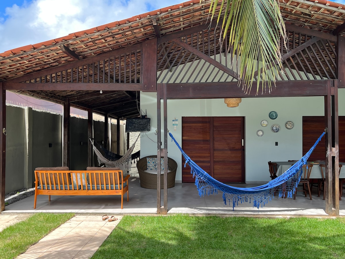 La casa con todo el espacio, no está en un condominio y la piscina es solo la casa. Hay 5 suites, 5 con aire acondicionado, televisión y estacionamiento. ¡Espacios verdes, hermosas plantas! Distancia a la playa: - caminar, a unos 900 metros por el sendero y 2,6 km por el principal. - vehículos, de 7 a 10 minutos (unos 3 km). - Parrilla - piscina con cascada - mesas junto a la piscina - Área de apoyo, con fregadero, encimera y mesa de madera. - Cocina abierta - zona de lavandería - hamacas. - etc.