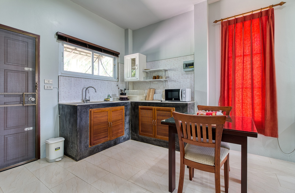 Alquilamos esta increíble casa para un máximo de 4 personas, justo en Bangrak Beach, una de las zonas más populares de Koh Samui. Hay muchos restaurantes y tiendas abiertos cerca. Ideal para trabajar también, con un escritorio e internet confiable. Ten en cuenta que solo puedes reservar 28 días o más: la electricidad se cobrará a 6 Baht por unidad (kwh).