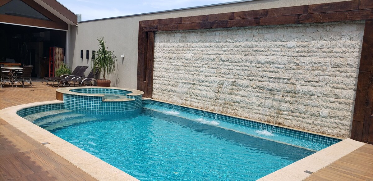 Hermosa casa con piscina y zona gourmet con todos los accesorios, aire acondicionado en todas las habitaciones y ducha con calefacción a gas. La casa tiene una hermosa piscina con cascada, terraza de madera y un gran sistema de sonido tanto para la zona de la piscina como para la zona gourmet.