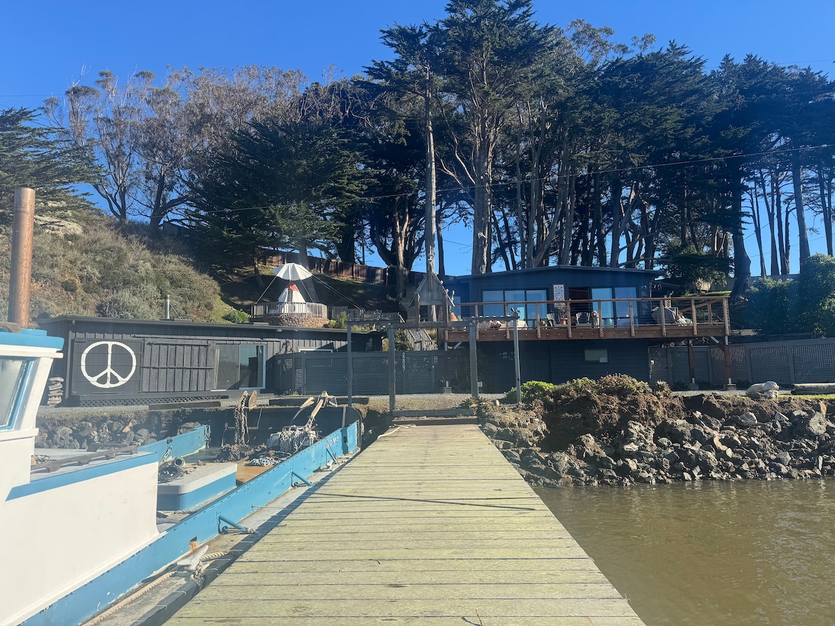 Casa de invitados frente al mar en la bahía de Tomales con muelle