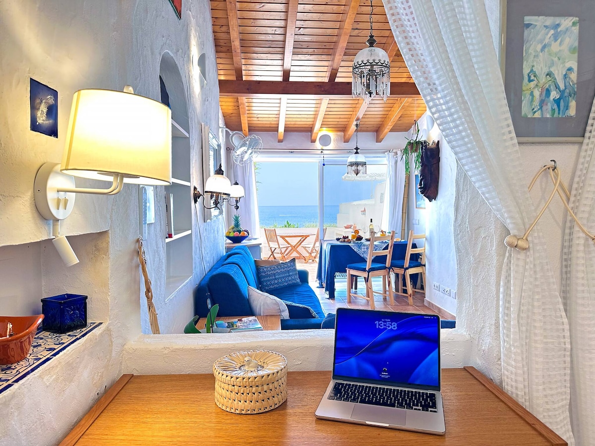 ¡Experimenta la serenidad de esta moderna casa con vistas al mar! Recientemente renovado, este apartamento tiene 2 balcones, con excepcionales vistas al mar desde la sala de estar y el dormitorio. Este alojamiento de 1 dormitorio y 1 baño tiene 2 camas, un vestidor, almohadas suaves, edredones, toallas y todos los artículos de aseo básicos incluidos. La cocina de concepto abierto tiene una amplia encimera, electrodomésticos de acero inoxidable y una isla central. Este espacio limpio y elegantemente diseñado incluye comodidades bien pensadas y todo lo necesario para una estancia cómoda.