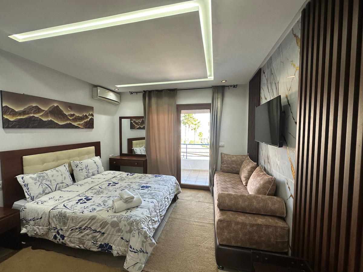 Moderno y chic apartamento en el complejo privado Costa Mar, Martil, con 3 piscinas abiertas todo el año y a solo 5 min a pie de la playa. Perfecto para una estancia cómoda, cuenta con WiFi y Netflix. Ubicación céntrica, cerca de IKEA y Marjane 10 min,con fácil acceso a Tetuán 15 min,Tánger 40 min y Chefchaouen 1 hora.A solo 10 min del aeropuerto Saniat Rmel.¡La casa no cuenta con aire acondicionado, pero garantizo que es muy fresca y ventilada de forma natural,Tu escapada ideal te espera!