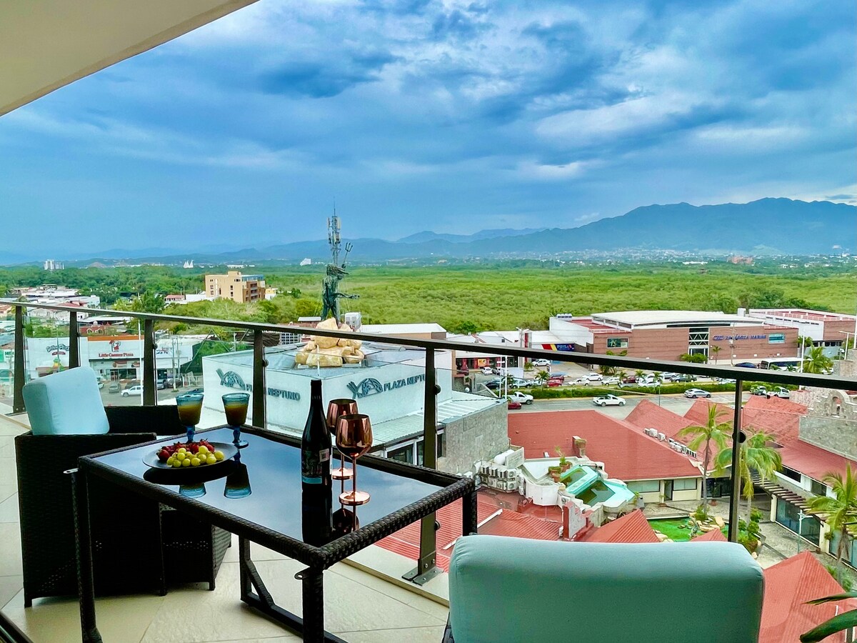 Welcome home to your MODERN 7th FL condo. Your Rooftop infinity pool w/ a BREATH-TAKING VIEW of the sea and cruise ships: simply stunning! Our space offers all the convenient amenities. Rooftop BBQ or gym with a view? You got it! All in a perfect location; only a 12-min walk to the beach, restaurants, bars, groceries, malls, cinema, and hospital. The Malecón, Romantica, and Marina are a quick 10-min drive away! YOUR dream getaway with stunning rooftop views right here in beautiful PV.