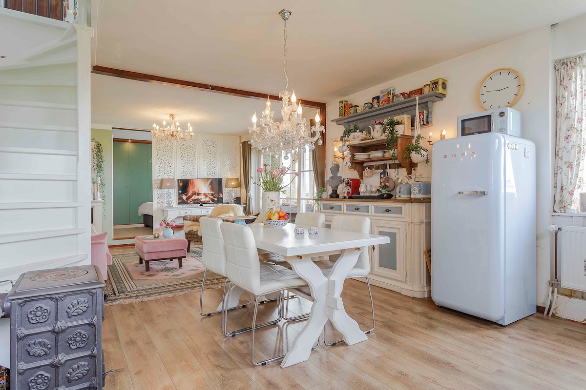 Una casa de cuento de hadas junto al agua en un oasis de paz. Disfruta de un vino o un chocolate caliente junto a la chimenea en la terraza de madera con una vista fantástica del pólder. Explora los auténticos pueblos pintorescos de la zona con los restaurantes más acogedores. Esta casa se encuentra en la parte trasera de una granja, en medio de una zona natural y de aves en el norte de Holanda, a 30 minutos de Ámsterdam. Cerca de Alkmaar, Ámsterdam, Hoorn y la playa de Egmond aan Zee.