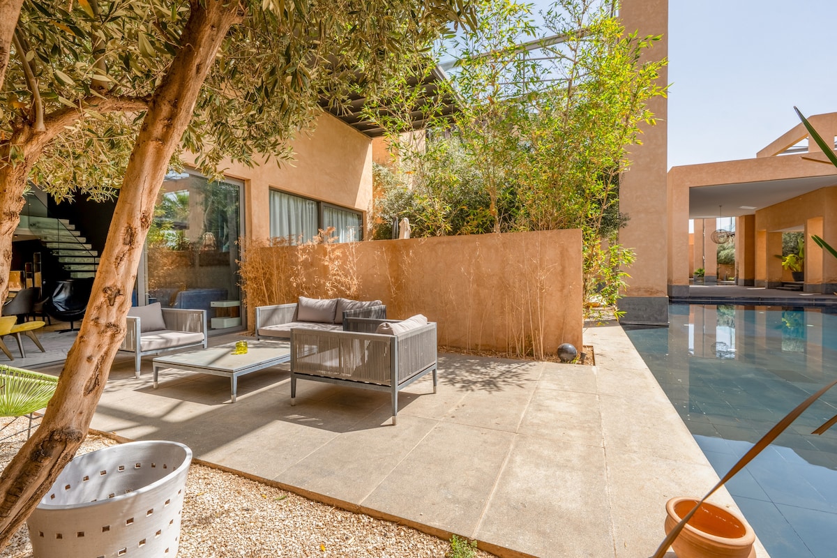 🏡 Alójate en este moderno y elegante loft con terraza Zen en Marrakech 🌞 Luminoso y espacioso, cuenta con una terraza Zen con una fuente de pared y una pérgola motorizada para momentos únicos de relajación. 🛋️ Acogedor dormitorio arriba con baño privado e inodoro. Nuevo edificio, de alta gama y seguro. 🍽️ Cafés, restaurantes y tiendas a pocos pasos de las animadas calles de Carré Eden y Plaza. Medina y Jemaa el-Fna están a 5 minutos en auto. ¡Disfruta de una estancia cómoda e inolvidable! ✨