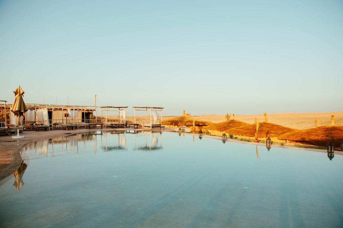Luxury awaits at The White Camel's 5 Pool lodges, blending five-star organic comfort with the stunning Agafay Desert. Enjoy Moroccan charm in tranquil surroundings, bridging Marrakesh's lively vibe with the serene Agafay desert.