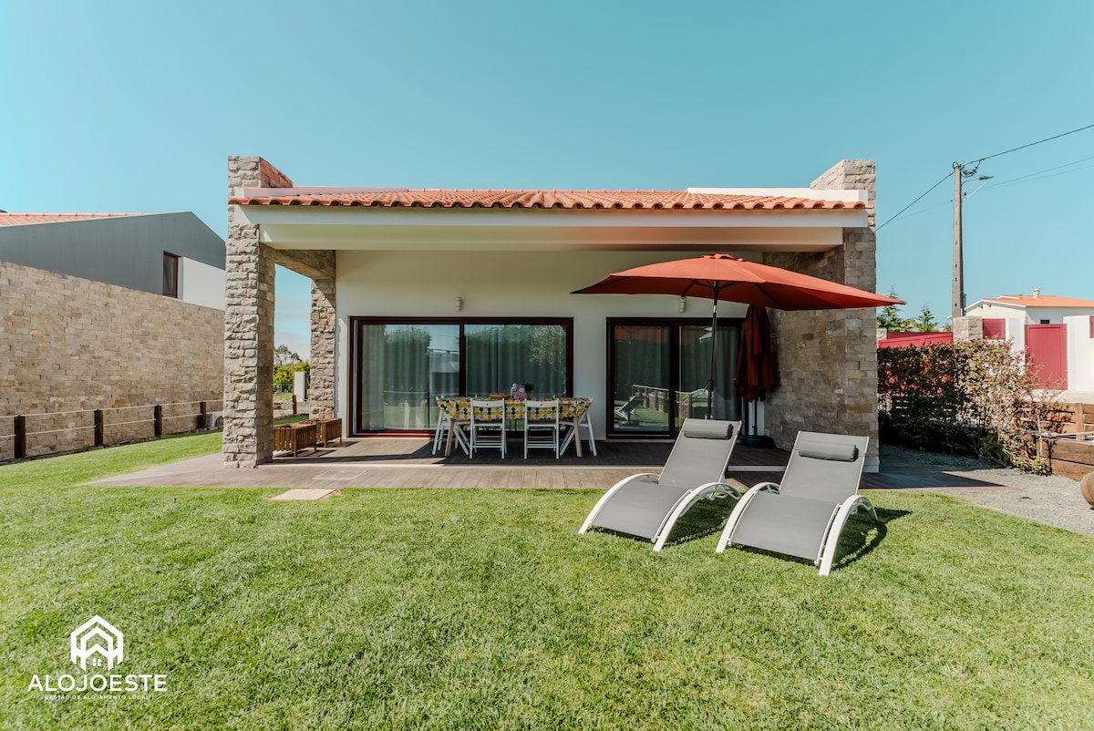 Situada a solo 40 minutos en coche del aeropuerto de Lisboa y a 10 minutos en coche de las playas más cercanas, esta elegante villa cuenta con 3 dormitorios y una piscina privada. Puede alojar hasta 6 adultos y un bebé. La casa es luminosa y moderna y el lugar es ideal si quieres explorar la región (Lisboa, Sintra, Óbidos, Ericeira, Nazaré, Cascais, Dino Parque, etc.) o surfear en las mejores olas de Portugal. Encontrarás una pequeña tienda de comestibles justo al final de la calle y grandes supermercados y restaurantes a 10 minutos en coche.