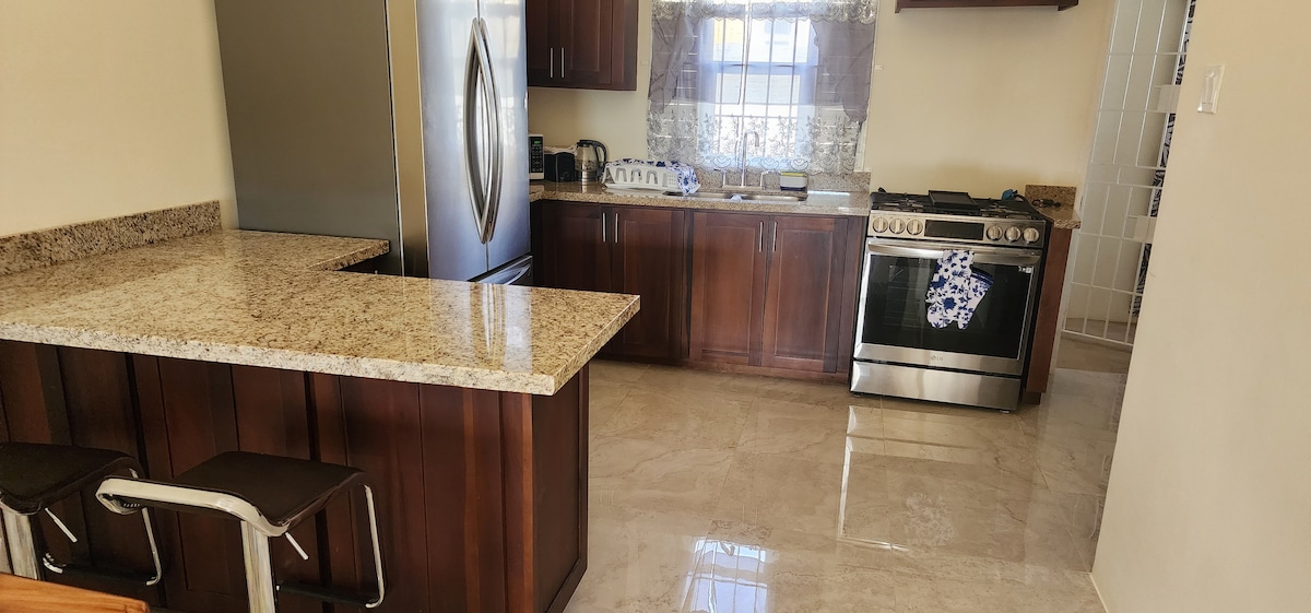¡Bienvenido a nuestro acogedor apartamento de 1 dormitorio y 1 baño en la hermosa ciudad de Martha Brae, Jamaica! Nuestro apartamento recién reformado es la escapada perfecta para parejas, viajeros solos o familias pequeñas. El dormitorio cuenta con una cómoda cama tamaño queen y el baño está equipado con ducha y todos los elementos esenciales. La sala de estar está equipada con un televisor de 55 pulgadas y la cocina tiene todos los electrodomésticos, utensilios de cocina y utensilios necesarios para que puedas cocinar tu comida y disfrutarla en el patio con parrilla.