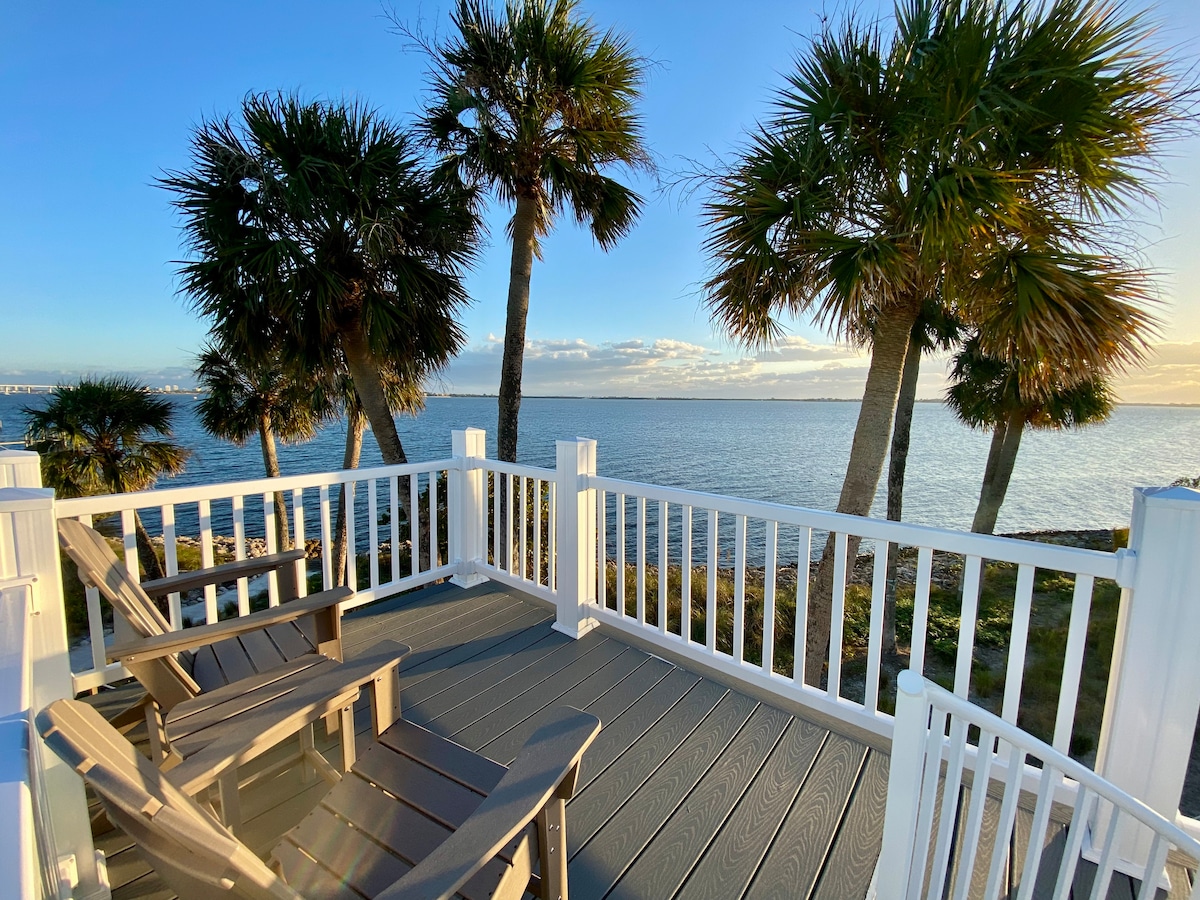Paraíso frente al agua con vistas a la azotea y piscina climatizada. ¡Mira delfines desde tus balcones! Espacio: Cama tamaño king + cama tamaño queen extraíble 2 balcones en la azotea y sala de estar. Electrodomésticos modernos Aventura: Kayaks, tablas de paddle, bicicletas Barbacoa + mesa y sillas Adirondack A 20 pies del lanzamiento del kayak. Felicidad al atardecer Ubicación: A 7 minutos de playas de arena blanca y del centro de la ciudad Restaurantes frente al agua Servicios: Wifi rápido, estacionamiento gratuito Totalmente abastecido, limpiado profesionalmente Pileta de agua salada climatizada Gimnasio y casa club TV inteligente, ducha de lluvia Corralito
