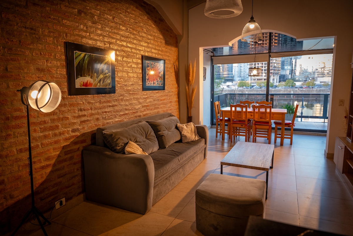 Relájate en este espacio tranquilo y elegante. El area de dormitorio ofrece la posibilidad de tener 2 camas individuales o una cama Queen. En la sala el sofá de transforma en una cómoda cama. La cocina tiene todos los elementos necesarios para preparar tus comidas. El departamento se encuentra cerca de muchos medios de transporte y accesos rápidos. El barrio tiene una bohemia propia, variados lugares para comer, podes hacer caminatas hasta la costa del río, recorriendo sus bellas calles