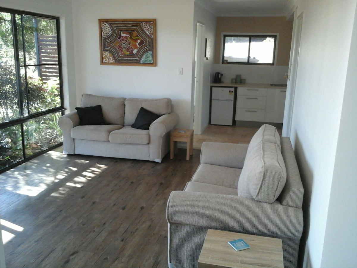 Tu casa de campo es totalmente independiente y está en un bloque frente a la playa en Dundowran Beach. Se admiten mascotas y cuenta con una cocina moderna, baño/lavandería, amplia sala de estar y terraza. Tendrás vistas al jardín de la casa de campo en la parte delantera de nuestra propiedad. Nuestro bloque es de medio acre con una buena distancia entre nuestra casa y la casa de campo para mayor privacidad. A 10 minutos en coche de Hervey Bay.