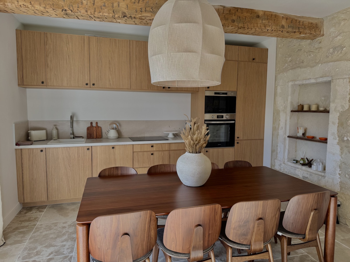 La bastida del Levante de 140 m² ofrece 3 habitaciones dobles con 2 baños, en la planta baja un hermoso espacio para vivir con gran sala de estar, comedor, cocina totalmente equipada y zona de chimenea que se abre a una amplia terraza. Aire acondicionado, calefacción y wifi. jardín cerrado de 800 m2 con robles, flores de colores y hierbas aromáticas. El jardín está equipado con una piscina climatizada de 8 x 4 m, un baño, una casa de la piscina equipada con una barbacoa Green Egg y amplias terrazas