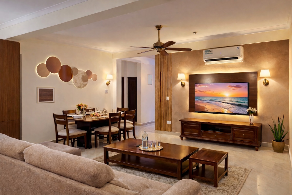 Acerca de este espacio Este departamento totalmente privado de 3 dormitorios es exclusivamente tuyo. • Camas cómodas • Baños privados. • Escritorio y silla de trabajo dedicados • Armarios y amplio almacenamiento • Bañera para el dormitorio principal. • Amplia sala de estar y comedor, ideal para familias y grupos. • Cocina moderna totalmente equipada • Televisor inteligente, wifi rápido y confiable • Diseño familiar con mucho espacio. • Piscina compartida.