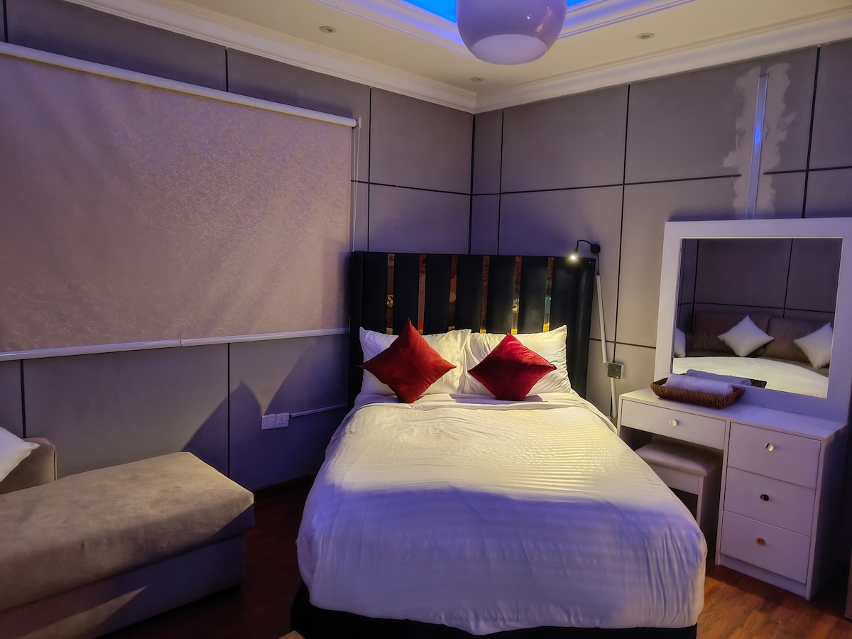 Bienvenido a Z Residence by Dayf, que cuenta con dos dormitorios con amplio espacio en el armario. La sala de estar incluye un sofá y un comedor con una mesa de 4 plazas. La cocina totalmente equipada cuenta con electrodomésticos modernos, como nevera, fogones y microondas, además de utensilios de cocina y vajilla. Nuestro apartamento ofrece dos baños con duchas, lavabos e inodoros, así como una lavadora. El apartamento está convenientemente ubicado a 2 minutos a pie de la estación de autobuses que puede llevarte a Al-Haram.