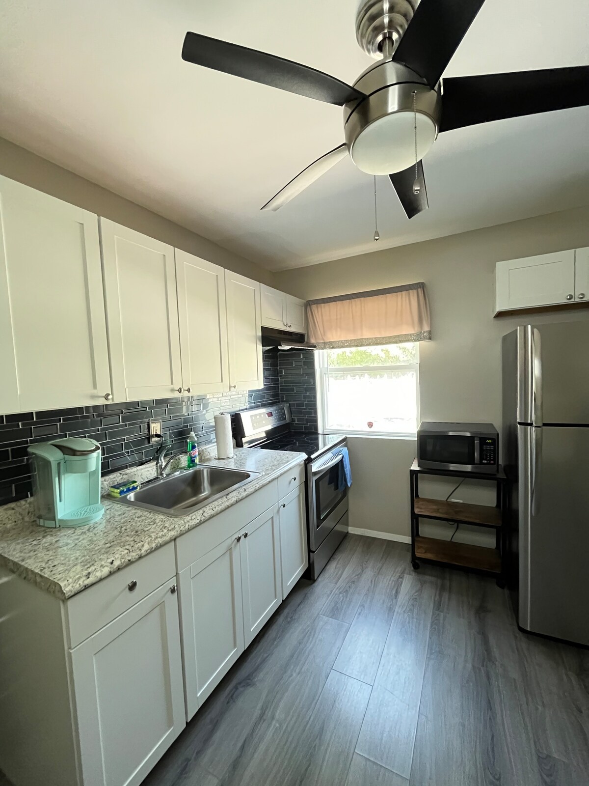 Everything you need is here! This private studio apartment is in a cozy home for long or short stays! Our studio apartment is newly renovated and has it's own private entrance in front of the driveway! Your outdoor area will come with tables and chairs and even access to the pool when you let us know ahead of time!