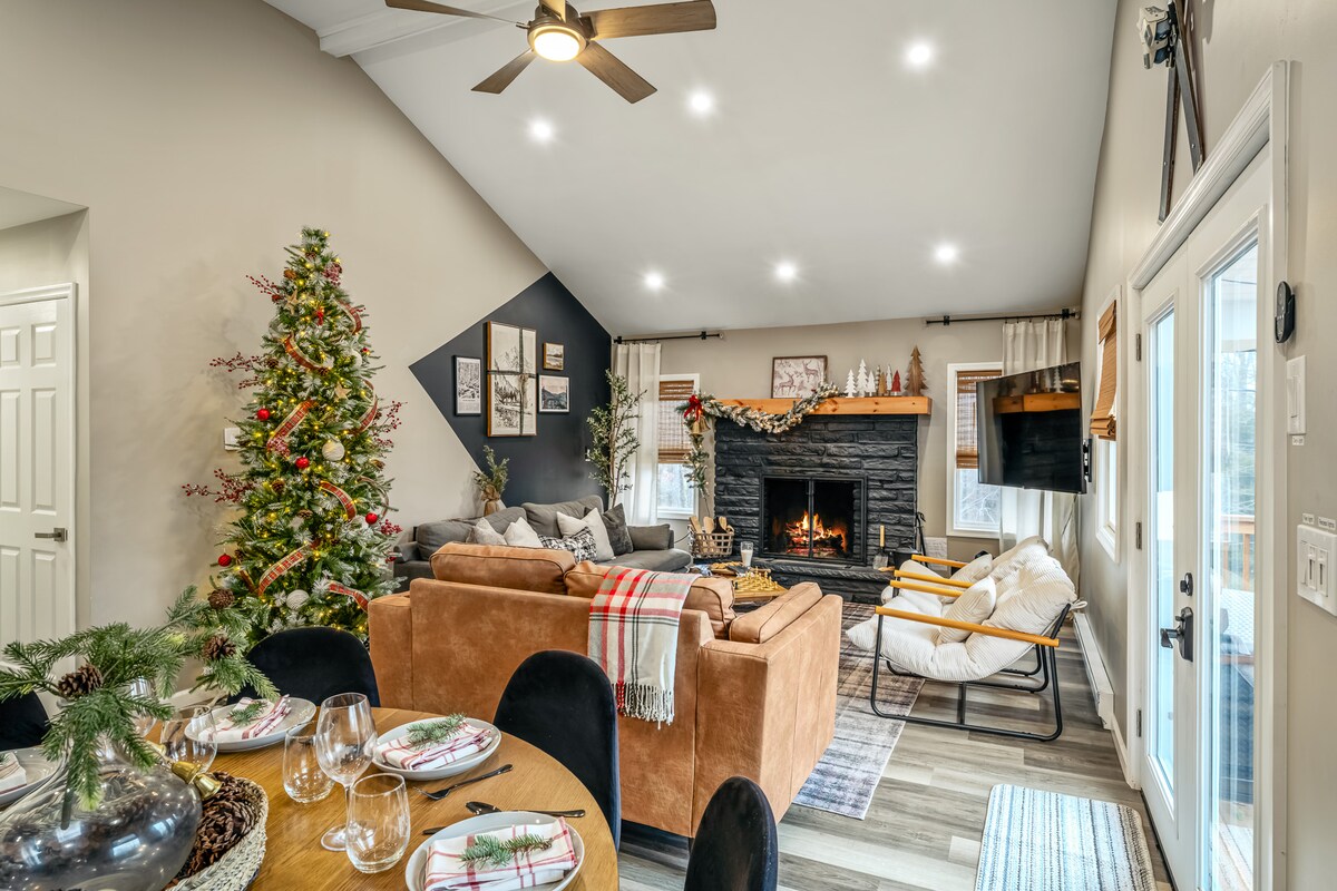 Un impresionante chalet idealmente situado en las montañas Pocono. ¡Tu destino para una escapada de fin de semana o una estancia más larga durante todo el año! En el exterior se puede disfrutar de un entorno natural en una hermosa propiedad arbolada privada de 1 acre, jacuzzi, dos fogatas, una terraza para el café de la mañana o una deliciosa barbacoa. Nuestro alojamiento ofrece un ambiente interior tranquilo y está convenientemente ubicado cerca de todas las actividades de temporada de las montañas Pocono. Tanto si quieres relajarte como recargar energías, nuestro alojamiento es el refugio perfecto.