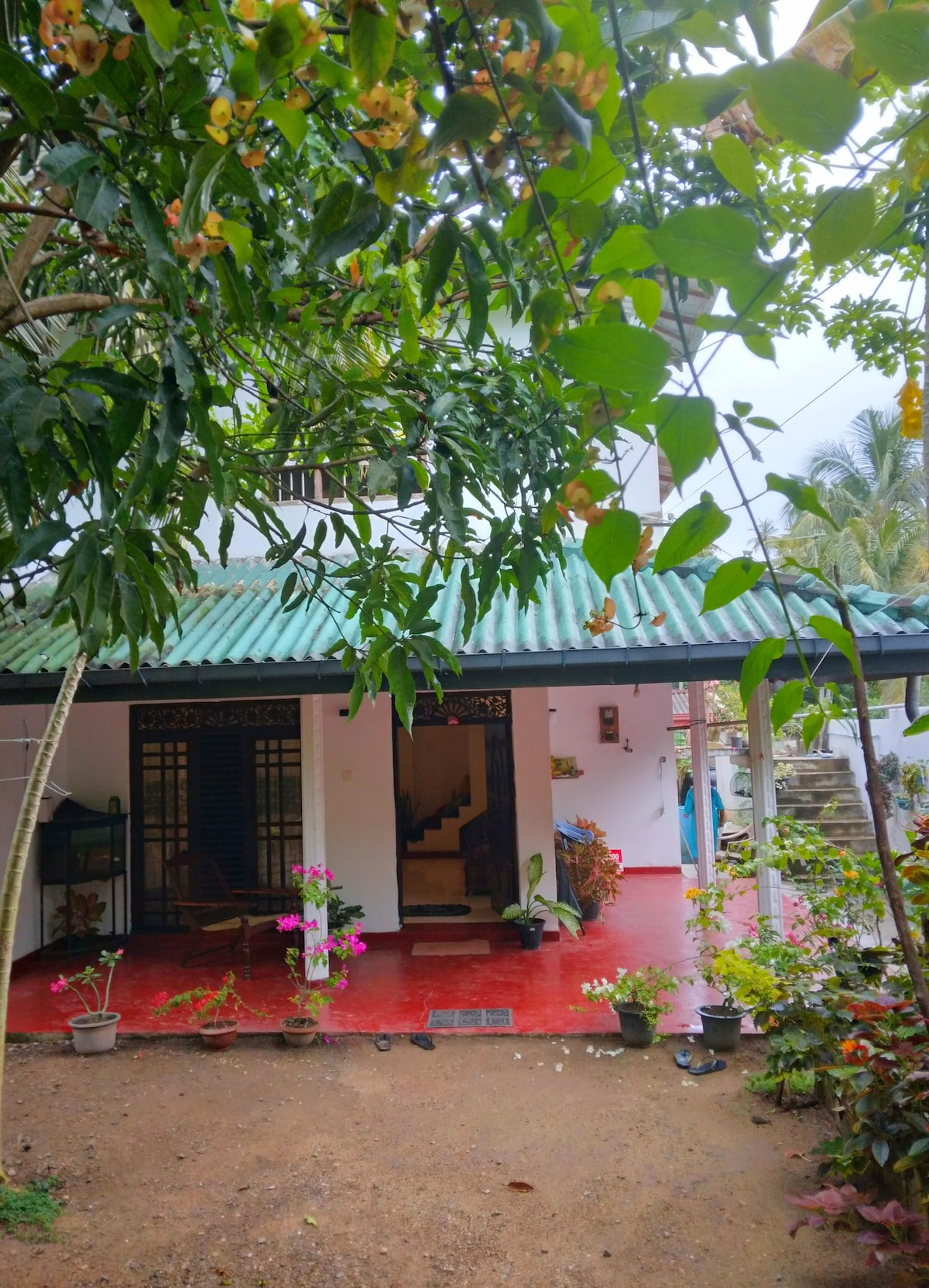 Una casa de playa independiente de propiedad europea en una bahía aislada en Thalaramba, a pocos minutos de la animada Mirissa y que ofrece un alojamiento elegante. Perfecto para una pareja en el dormitorio principal y el segundo dormitorio recién renovado. tiene dos camas individuales para 2 niños o 2 adultos individuales. Decorada con buen gusto en estilo colonial de Sri Lanka con sala de estar separada y cocina bien equipada. Conexión wifi de fibra con 100 mbps para aquellos que trabajan como nómadas digitales. NO hay aire acondicionado, pero hay ventiladores.