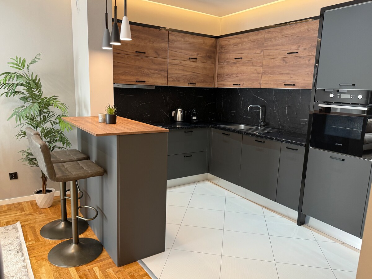 ¡Te damos la bienvenida a tu hogar ideal lejos del hogar en el corazón de Pristina! Este moderno departamento de 87 m² está ubicado en el vibrante barrio de Tophane, a pocos minutos del centro de la ciudad, y ofrece comodidad, estilo y conveniencia para todo tipo de huéspedes. •Amplia sala de estar de planta abierta con asientos acogedores, televisor inteligente y decoración elegante. •Cocina totalmente equipada con electrodomésticos modernos y comedor. •2 cómodas habitaciones •Estacionamiento subterráneo en el garaje • Ideal para parejas, familias o viajeros de negocios