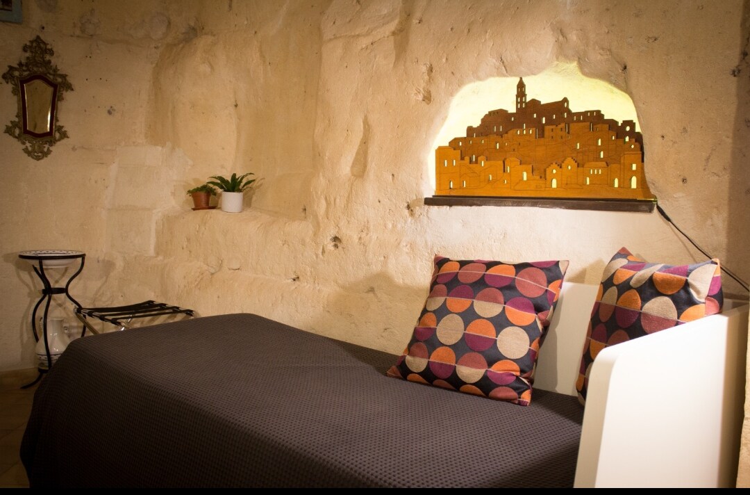 Es una casa típica tallada en la roca donde se puede experimentar la sencillez y la hospitalidad de este lugar evocador que es el Sassi. Está equipado con todas las comodidades: wi-fi,TVLCD,cocina americana, desayuno. Excelente ubicación para visitar la ciudad y sus alrededores