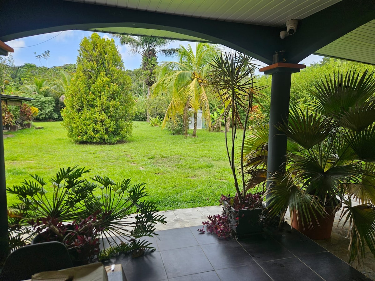 Cette belle villa est située sur une propriété privée, calme et sécurisée à 15 min de Cayenne et 5min de l'aéroport. Cosy et confortable, elle peut accueillir 4 personnes dont 3 adultes. Elle dispose d'une chambre climatisée avec salle de bain et WC, de la TV avec boxe orange et Netflix, d'un salon avec un canapé convertible confortable, d'une cuisine équipée et d'une terrasse aménagée. L'accès au SPA privé et à la piscine est gratuit. La villa dispose d'un parking privé et du wifi haut débit.