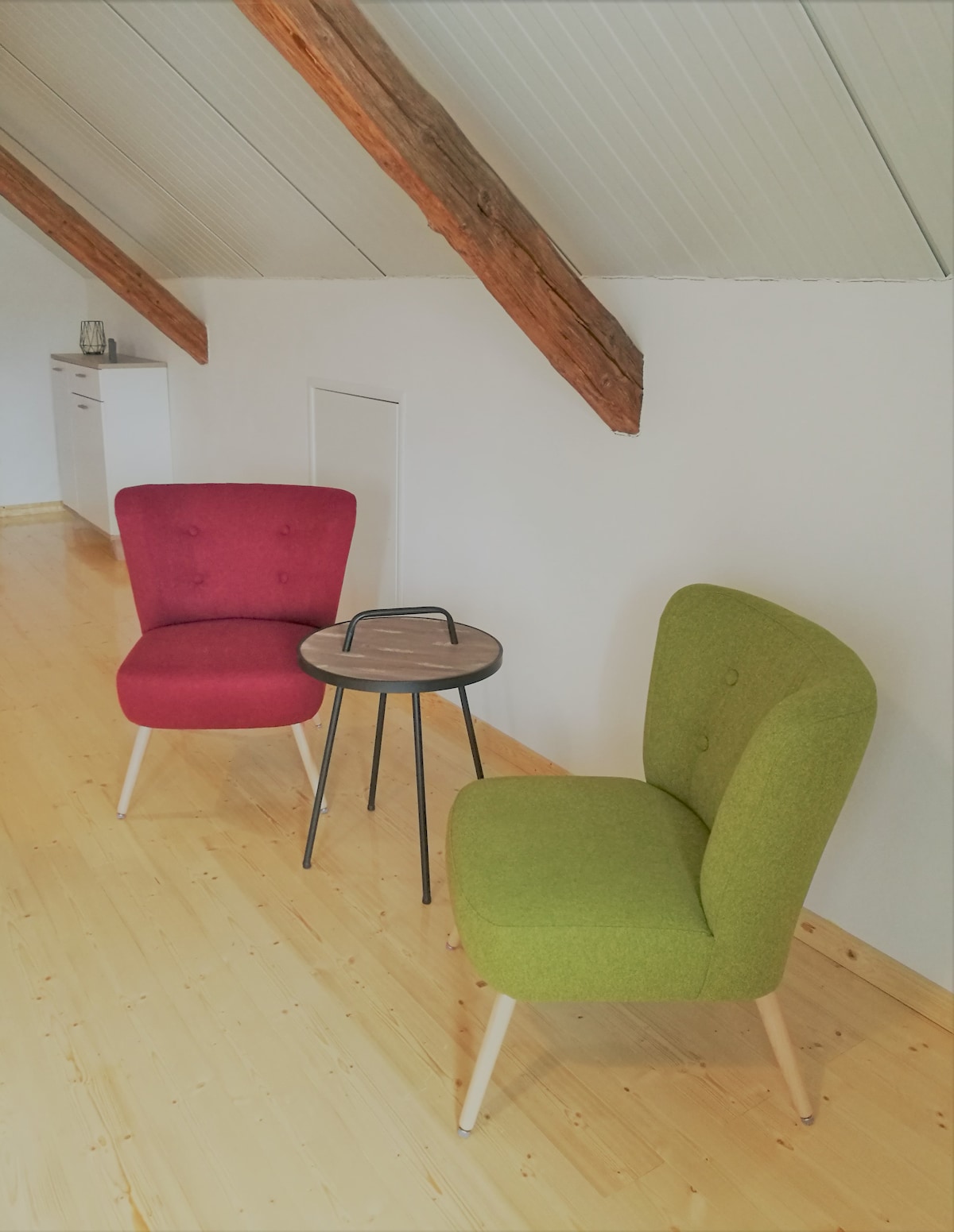 El hermoso, nuevo y renovado loft está fuera de la calle, tranquilamente en el campo con estacionamiento. El loft está amueblado con buen gusto y comodidad. En verano es agradablemente fresco aquí. Aquí puedes relajarte en el loft con yoga, pintura, lectura, juego, televisión o en el jardín bajo los árboles en una tumbona. Las camas están hechas y las toallas de baño están listas. El café y los tés orgánicos son gratuitos durante toda tu estadía. 1 botella de agua, chocolate y dulces te dará la bienvenida a tu llegada.