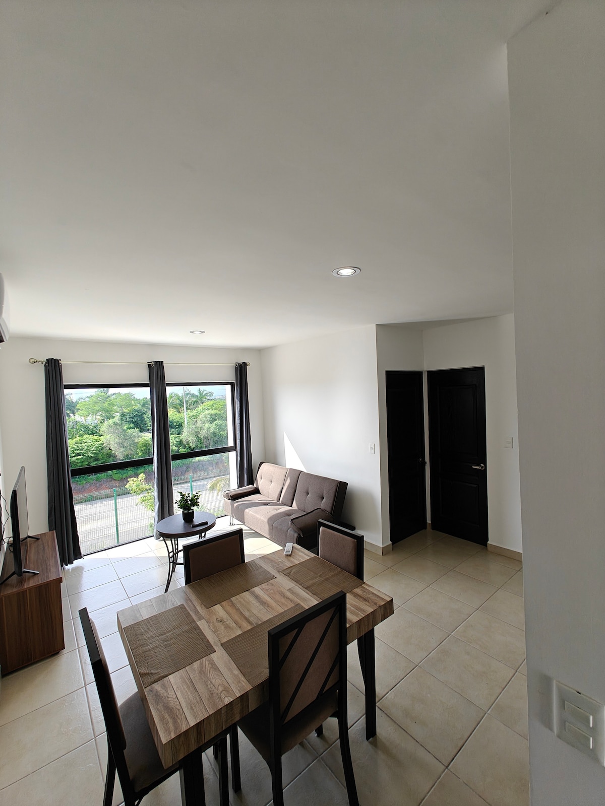 Casa en área tranquila con 2 habitaciones, 2 minisplits, sala con televisión, comedor, 2 ventiladores de techo, cocina equipada, área de lavado, patio, cochera para un automóvil. Cerca de centro comerciales y playas.
