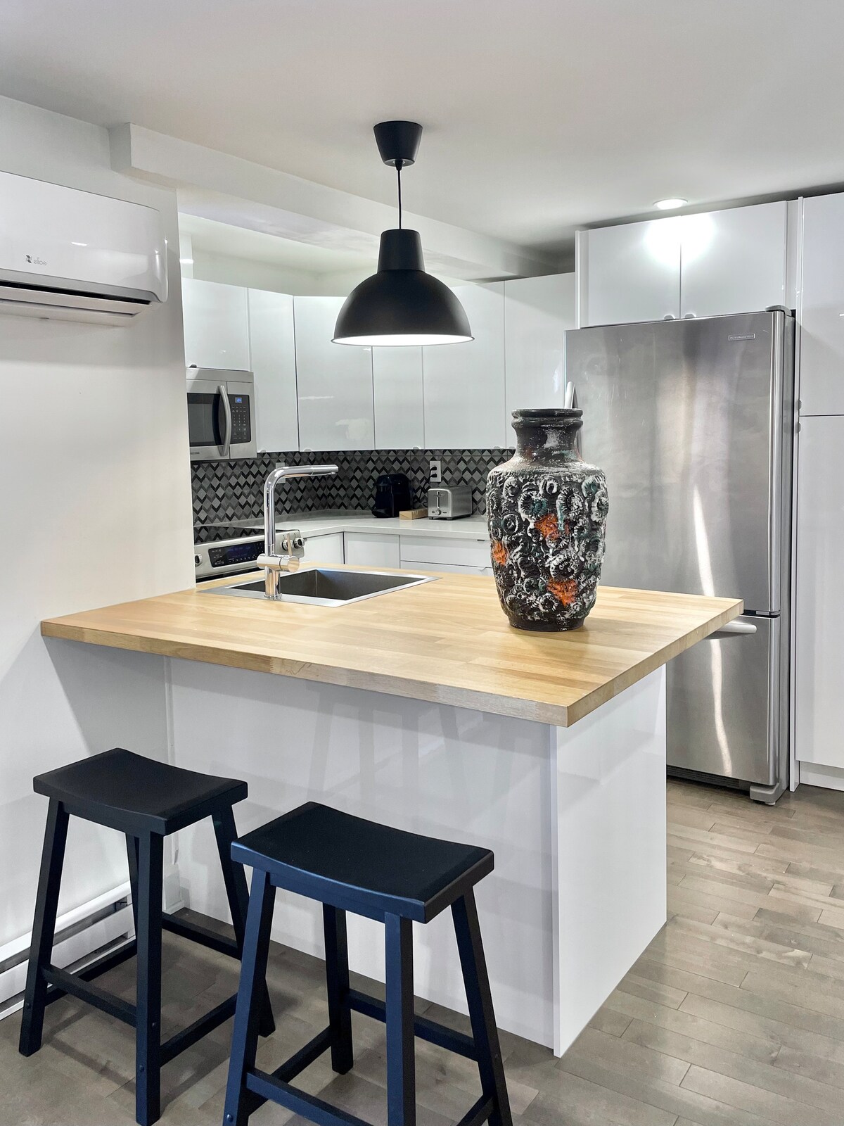 Experimenta comodidad y estilo en este luminoso y espacioso apartamento de un dormitorio 🚪 Autoregistro 🛏️ Cama tamaño king para noches de descanso 📺 Dos televisores inteligentes para transmitir tus favoritos Cocina 🍳 totalmente equipada con estufa, horno, nevera, lavavajillas y cafetera Nespresso. 🛋️ Acogedora sala de estar 🧺 Lavadora y secadora en la unidad Recomendaciones de estacionamiento🚗 cercanas en tu pase de abordar Opciones 🧳 de almacenamiento de equipaje cerca ⏰ Llegada anticipada o salida después de la hora establecida disponibles bajo petición. A pasos del parque Mont Royal y de los mejores cafés