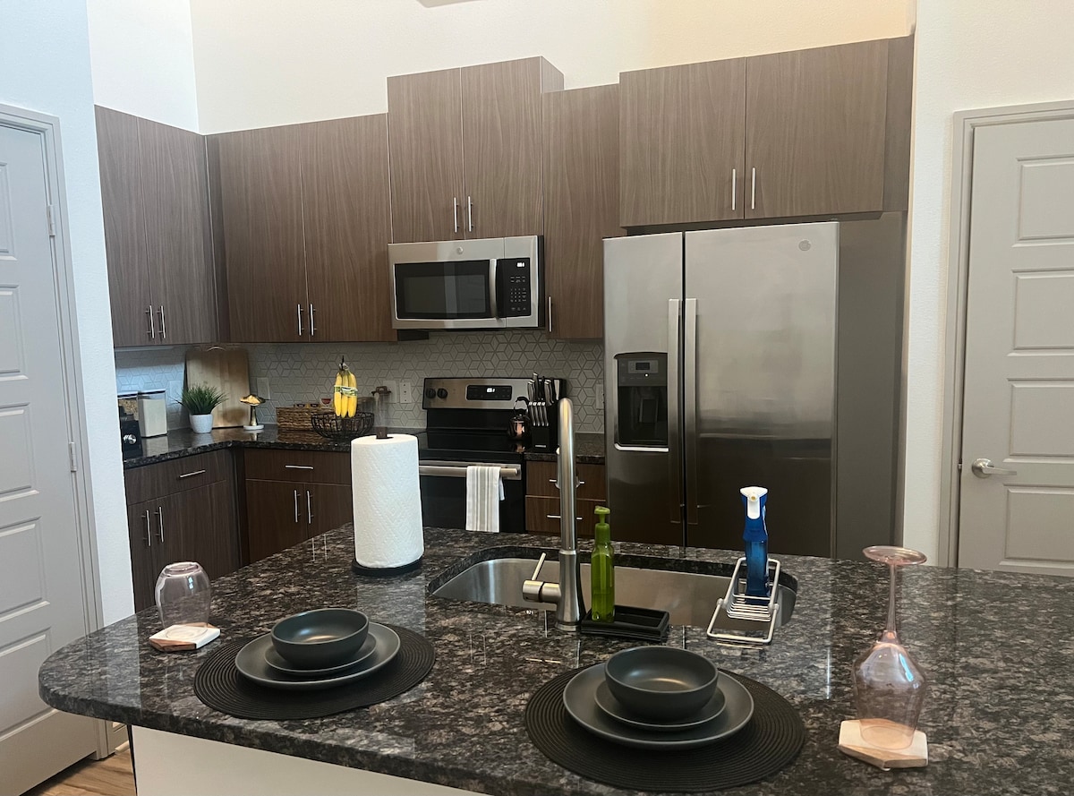 💘 Especial de escapada de invierno 💘 Escápate a este tranquilo departamento de Frisco Square, perfecto para el fin de semana de San Valentín, viajes de trabajo o estancias de invierno. Disfruta de una decoración elegante, una acogedora cafetería ☕ y servicios de estilo resort: piscina, gimnasio, salón deportivo, parrillas al aire libre y patio. Camina hasta restaurantes, tiendas y a pocos minutos del Estadio Toyota 🏟️. ✨ ¡Reserva ahora, las fechas de febrero se están llenando rápidamente!