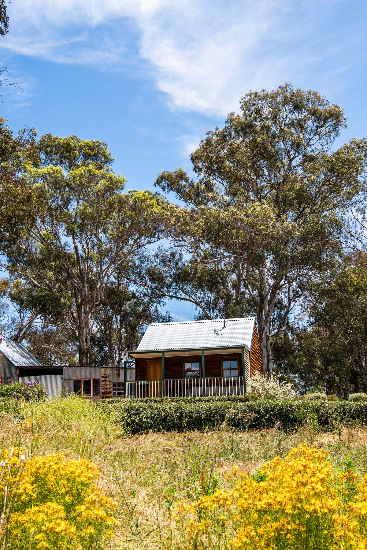 Gawthorne's Hut: cabaña ecológica de lujo, diseñada por un arquitecto, solo para parejas, la más reciente de las escapadas rurales únicas de Wilgowrah, incluidas Wilgowrah Church y Tom's Cottage. Construida para capturar impresionantes vistas, ofrece a los huéspedes paz, privacidad y una sensación de aislamiento. Cama tamaño king, baño completo, ducha, inodoro con cisterna, cocina pequeña, wifi, aire acondicionado (con algunas limitaciones) y chimenea exterior (cerrada durante los periodos de alto riesgo de incendio). No se aceptan niños de 2 a 12 años ni bebés de 0 a 2 años. No se aceptan mascotas.