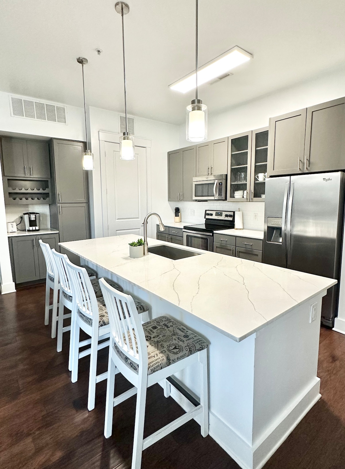 Upscale suite w/King & Queen sized beds. Enjoy 750+ square feet of comfortable living space in NoDa district near Uptown Charlotte. Right off LIGHT RAIL and conveniently located minutes from the city's best venues, food & shops bars, and activities. Popular location with the area's largest employers and hospitals nearby. Everything you need to enjoy your stay, full kitchen, basic cookware, beautiful appliances, high-speed WiFi, outdoor patio, gym, pool. Free parking and easy Uber/Lyft access.