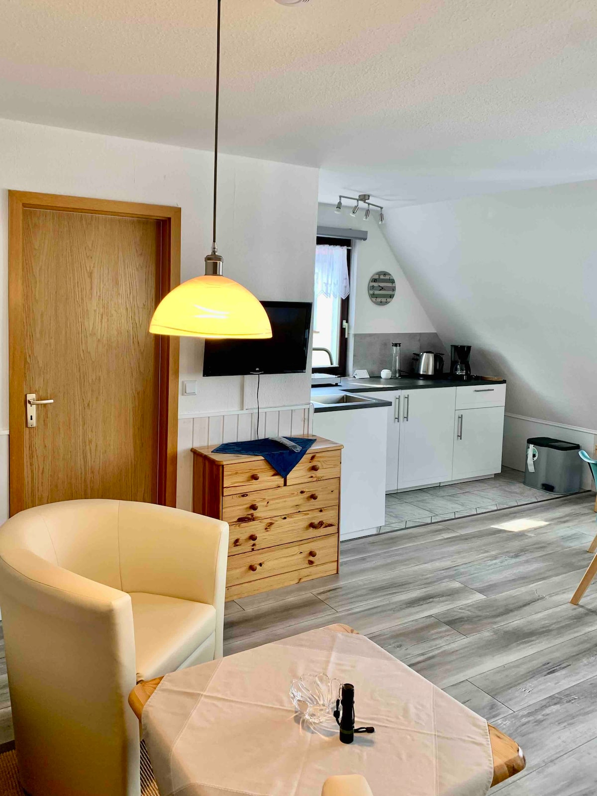 Nuestro apartamento de 1 habitación en el Kornfeld es un pequeño y acogedor alojamiento para 2-3 huéspedes. En la cocina pequeña hay una nevera grande con un compartimento separado para el congelador, un horno con vitrocerámica, microondas, hervidor, cafetera y una tostadora. Durante tu estadía, tienes acceso wifi gratuito, así como un televisor. En nuestro departamento encontrarás un cama doble (1,60 x 2 m) y un sofá, que se puede utilizar como opción para dormir para otro huésped.
